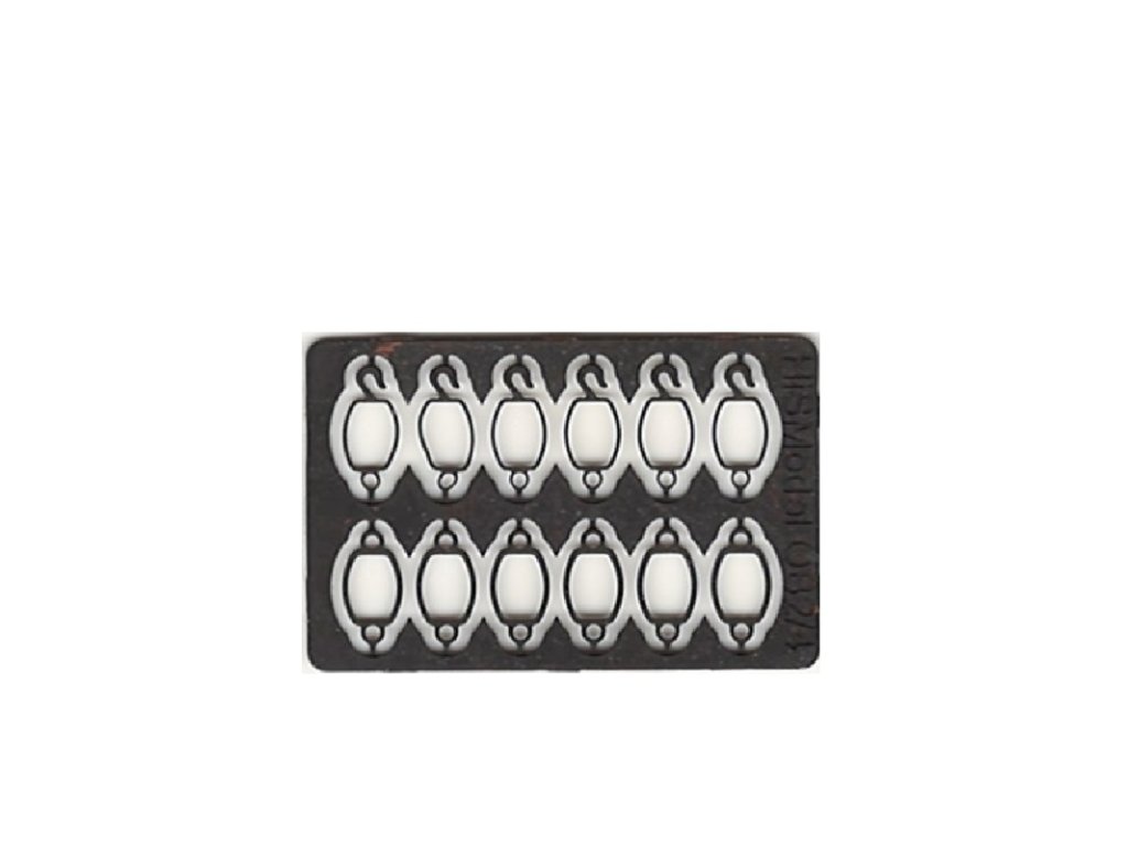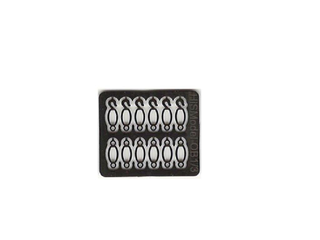 Kovové objímky byly součástí spodních kladek napínacích kladkostrojů na plachetnicích. K objímkám byly připevněny háčky, kterými se celé sestavy upevňovaly do paluby nebo do opěrných lavic. Set obsahuje fotoleptané mosazné objímky pro kladky specifikovaných typů SB1/3, DB2/3 a DB2/4 ze sady doporučených kladek pro tento model.