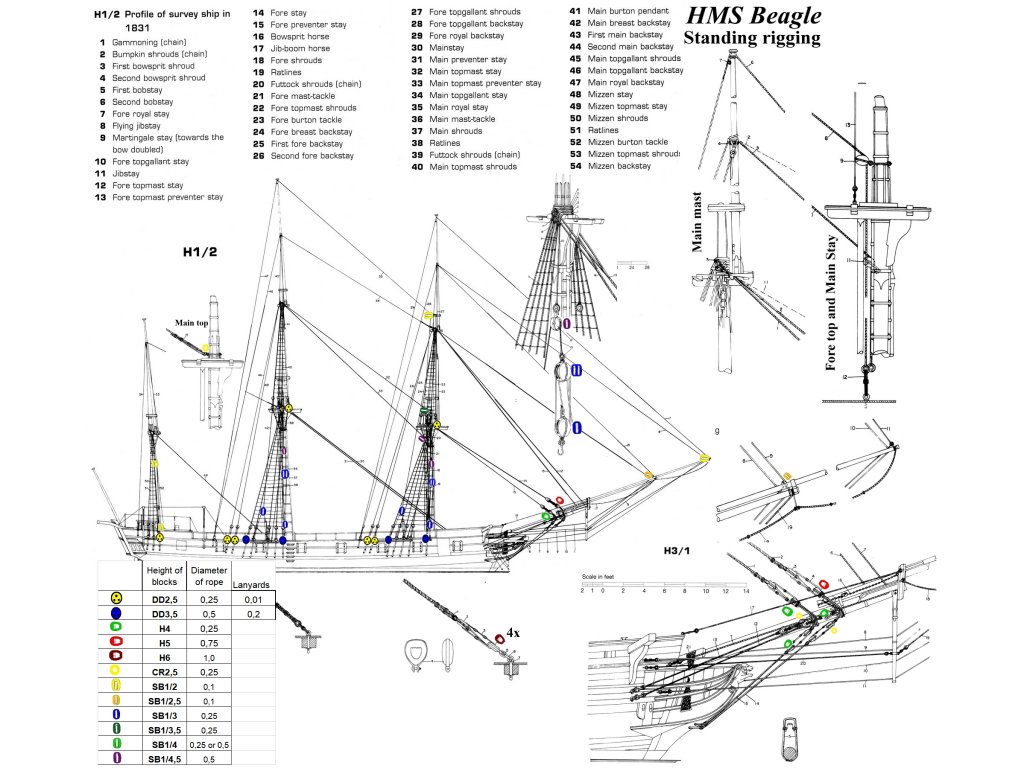 Set contains all the blocks needed for realization of standing rigging of the ship according to the plan with marked blocks.