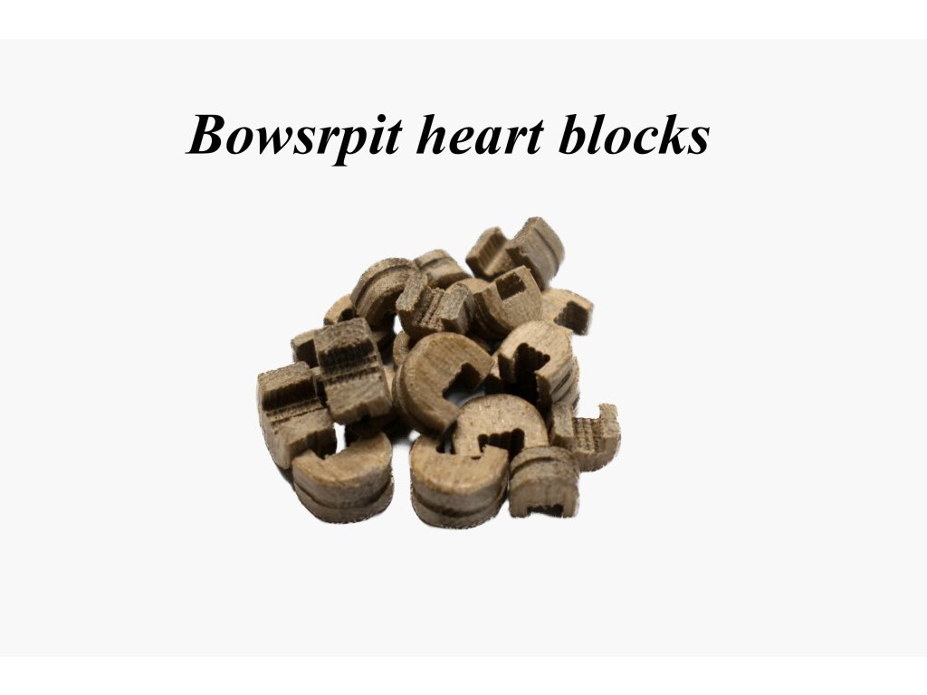 The bowsprit heart block is a shortened (cut) version of the heart block, used exclusively for tensioning the forestay between the foremast and the bowsprit.