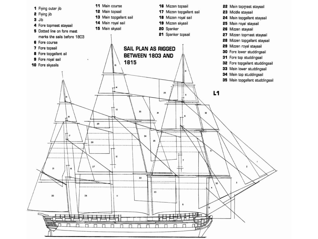 Description of sails: Complete set of standard sails, corresponding to the period 1803 - 1815.