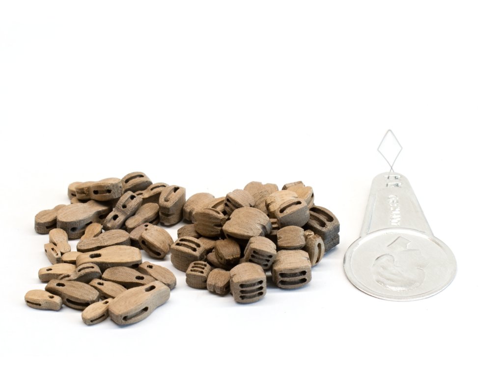 The set includes 108 pcs CNC walnut pulleys for EASY Version of Running rigging according to the plan provided
