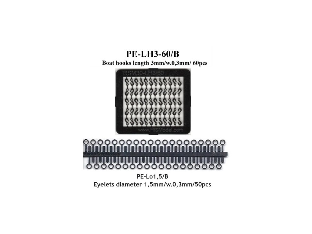 | 2: | PE-LH3-60x/B Ship hooks 3mm/th.0,3mm/60pcs - patinated in black (1x) |