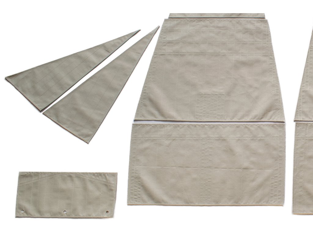 - "Buntline cloths“ are sewed from the lower edge of the sail, from places where the sail ropes were fastened - Buntline. Which was used to furling the sails.