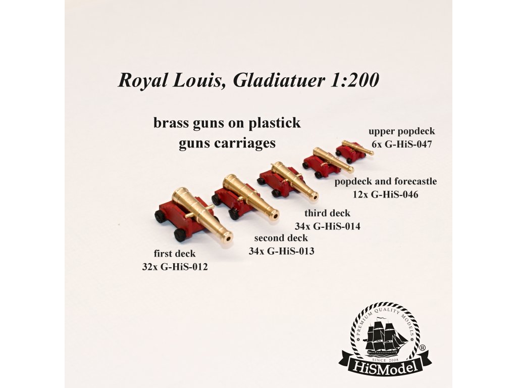Royal Louis, Gladiateur - set of 16 pcs brass guns on uppetr decks