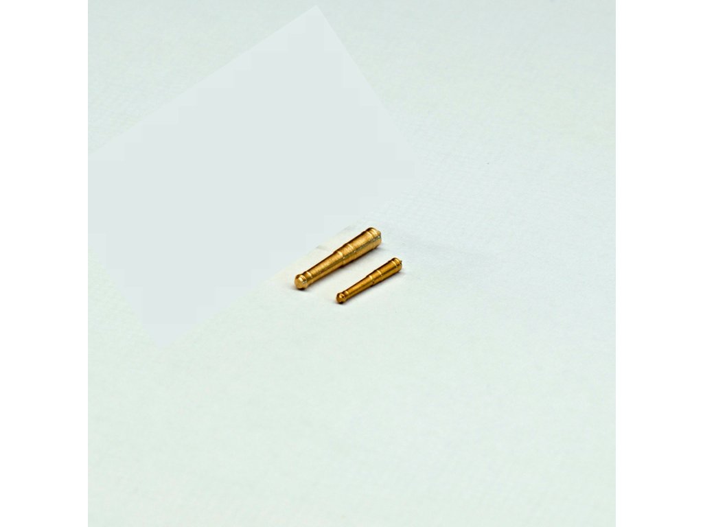 - The trunnion on which the cannon was mounted on the guns carriage. Therefore, a piece of brass wire is included from which these trunnion (pins) must be cut and glued to the plastic guns carriage from the model. Then, in the place where the trunnion (pin) comes, use a file to cut a small notch in the cannon so that the cannon fits on the glued wire imitation of the pin.