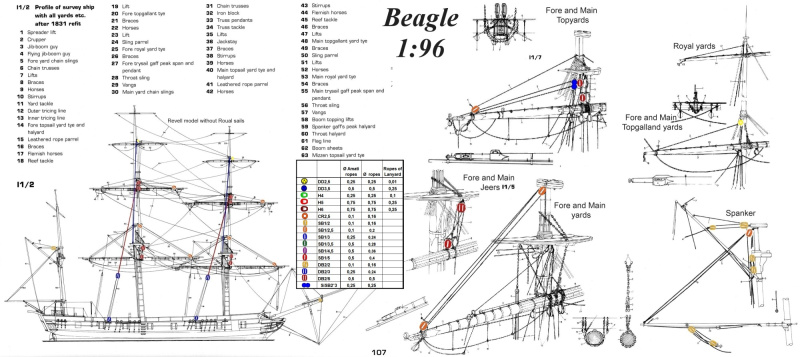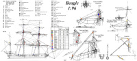 Plan of HMS Endeavour 1:110, Airfix for rigging with marked blocks.