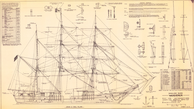 The plans are the same as those for the Charles W. Morgan, as the rigging of both ships was identical.