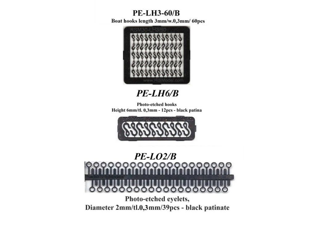 | 3: | PE-LH3-60x/B Ship hooks 3mm/th.0,3mm/60pcs - patinated in black (1x) |