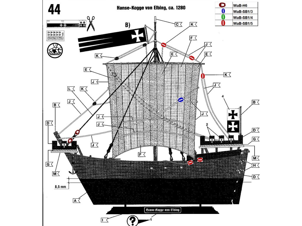Nabídka obsahuje všechny potřebné kladky pro realizaci takeláže lodi podle plánů s vyznačenými kladkami.