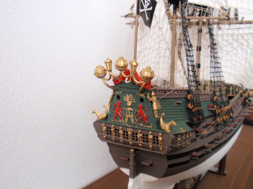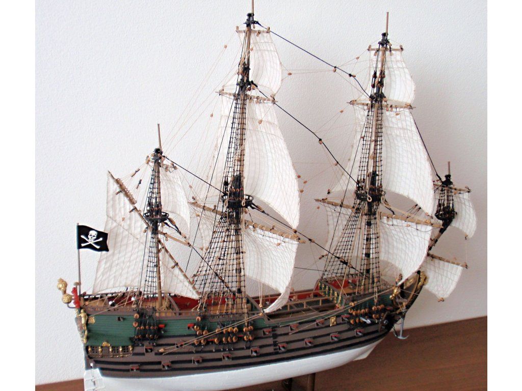 U nás málo viděný model! Kvalitně vylisovaný s mnoha detaily. Nevýhodou však je, že drážky mezi prkny na palubě a boku lodi pod čárou ponoru jsou pozitivní – čili vystupují na horu. Myslím si, že však tato drobnost by nemněla odradit od nákupu. Mnohým to vůbec nevadí a zkušenější modelář si poradí co s tím. Obsahuje dále žebříky z pružného plastu, vylisované plachty, plánek, pirátskou vlajku. Model má i několik postaviček. Pro inspiraci koukněte ZDE, kde je model v perfektním provedení, nebo na Modelfóru pěkná stavba od Petra ZDE.