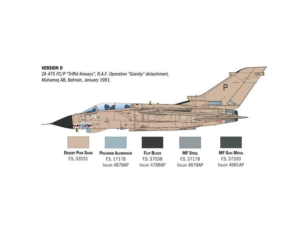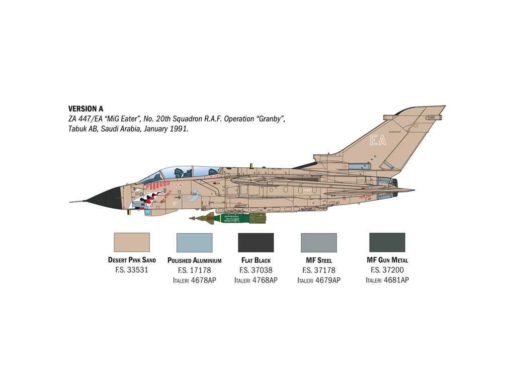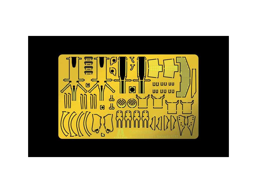Model letadla ke slepení. Velikost: 1:32; 52,1 cm. Obtížnost: 5.NOVÉ DÍLY - Více než 350 dílů - Jemné fotoleptané detaily - Odnímatelný motor RB199 s podpůrným vozíkem - Zatažené nebo vysunuté klapky a lamely - Pohyblivá křidélka - Otevíratelný radom a plně detailní radary - Otevřené nebo zavřené obraceče tahu - Otevřené nebo zavřené vzduchové brzdy - Gumové pneumatiky - Křídla a pylony s proměnnou šípovitostí - Gumový kryt pro vstupní bod křídel - Barevný návod k obtiskům - Archil super obtisků pro 4 verze - Nový Mk.13/18 Peveway LGB - Maskovací listy kokpitu