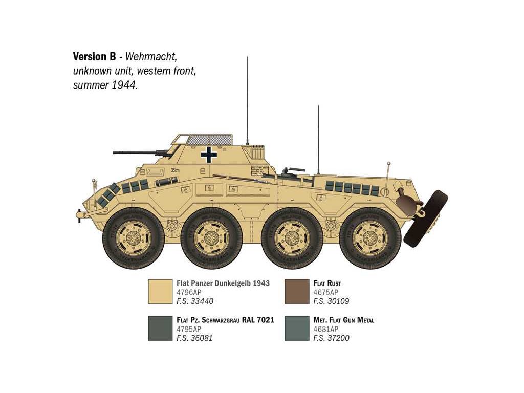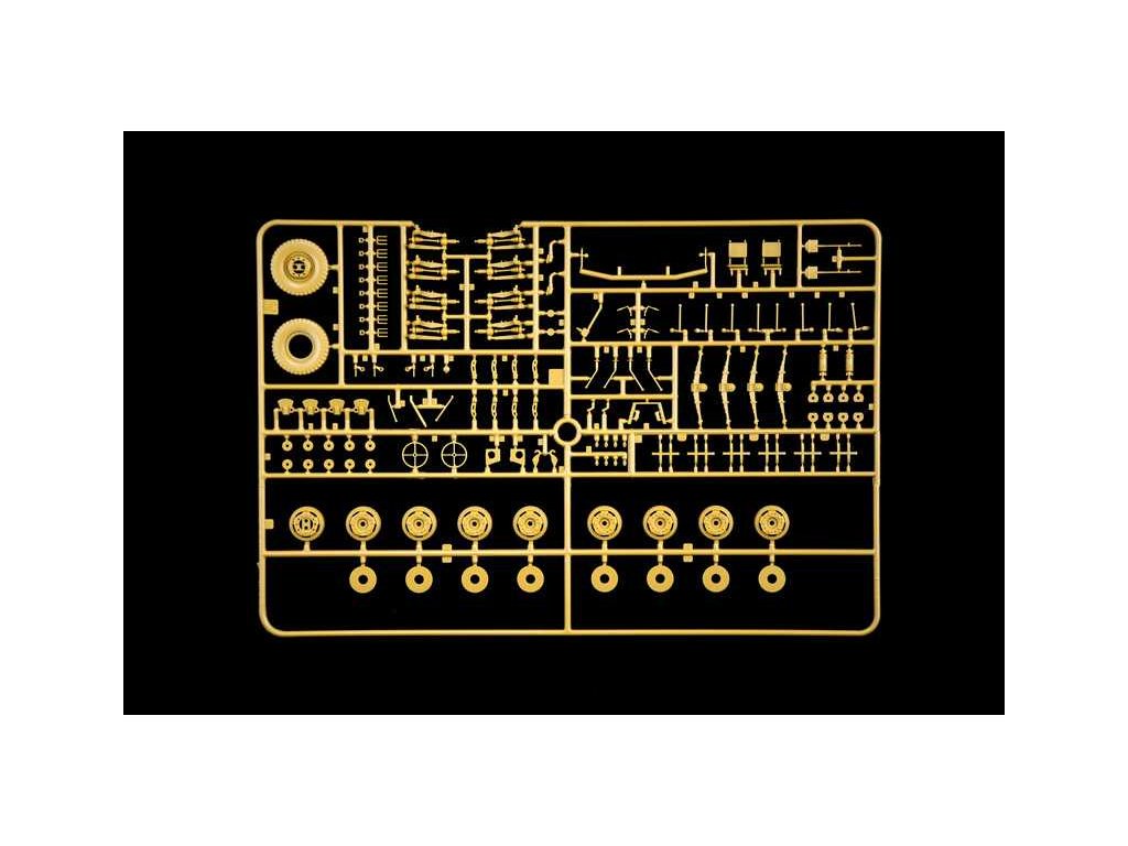 Model military ke slepení. Velikost: 1:35; 17,1 cm. Obtížnost: 3.GUMOVÉ PNEUMATIKY - FOTOLEPTANÉ DÍLY - OBLISTY PRO 3 VERZE - BAREVNÝ NÁVOD K POUŽITÍ