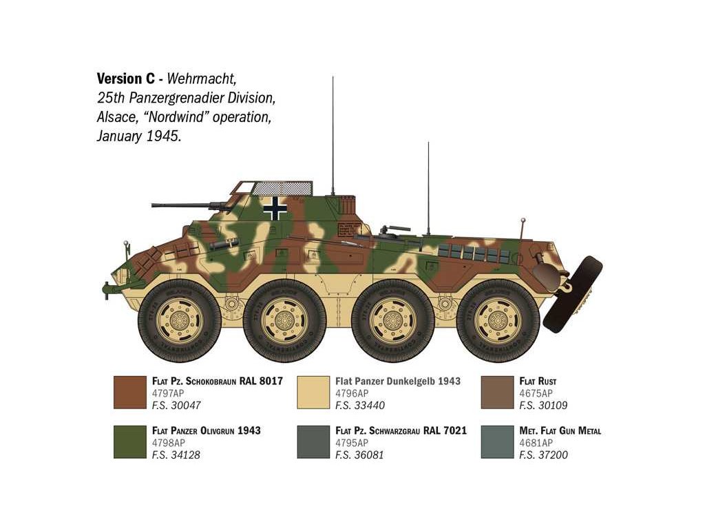 Obrněné vozy řady Schwerer Panzerspähwagen Sd.Kfz. 234 byly vyrobeny německým válečným průmyslem v závěrečné fázi druhé světové války. Vyznačovaly se vysokou kvalitou výroby, kombinací mobility, operační flexibility a útočných schopností. Konstrukce představovala vynikající rovnováhu mezi rychlostí v terénu, ochranou a palebnou silou a efektivně využívala operační zkušenosti Wehrmachtu získané v prvních letech konfliktu. Na silnicích mohlo vozidlo dosáhnout maximální rychlosti 85 km/h. Mezi různými vyrobenými verzemi sloužil Sd.Kfz. 234/1 často jako velitelské vozidlo. Byl také nasazen v průzkumných misích a byl vybaven 20mm kanónem KwK 30 umístěným v otevřené věži, schopným poskytovat pěchotní palebnou podporu proti lehce obrněným cílům.