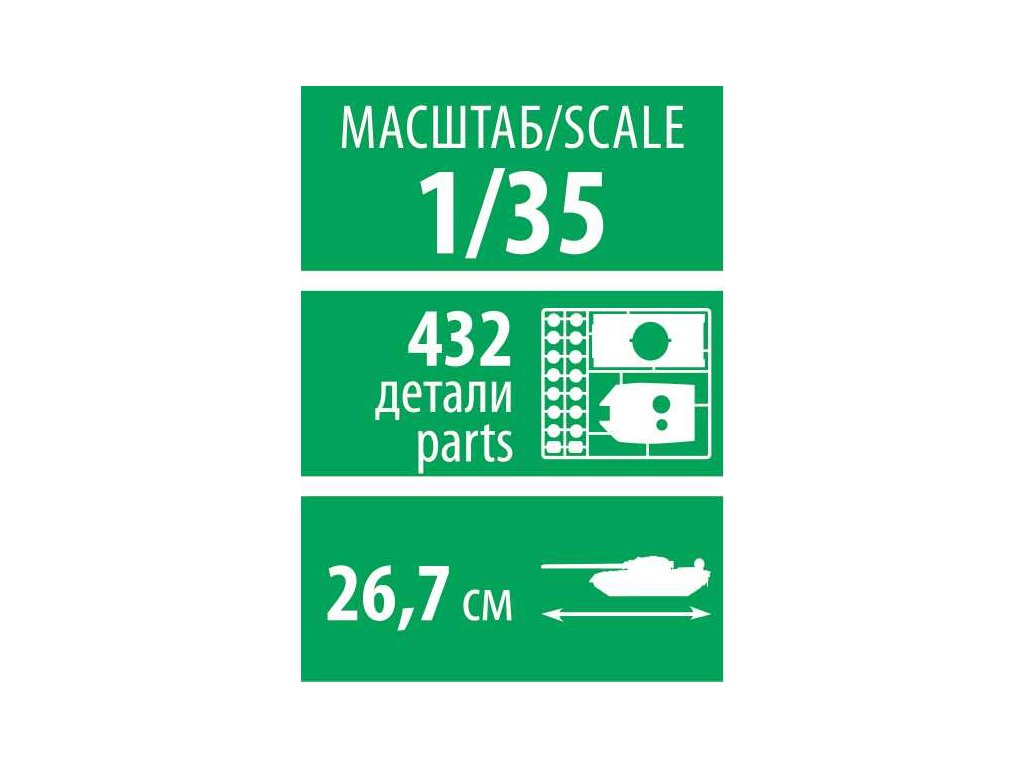 Model tanku ke slepení. Velikost: 1:35; 26,7 cm. Balení obsahuje: 432 dílků ke slepení.Doplňkové parametry