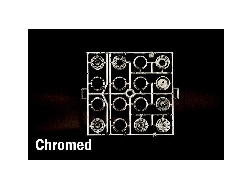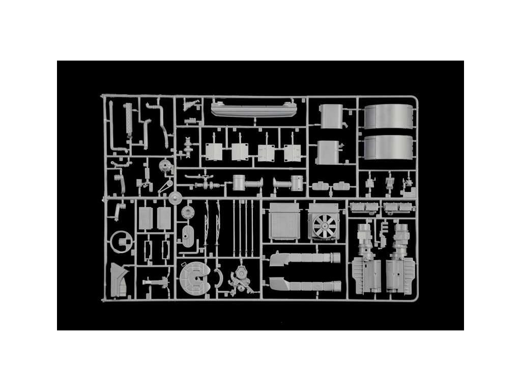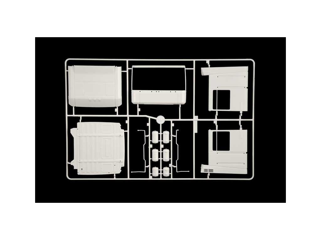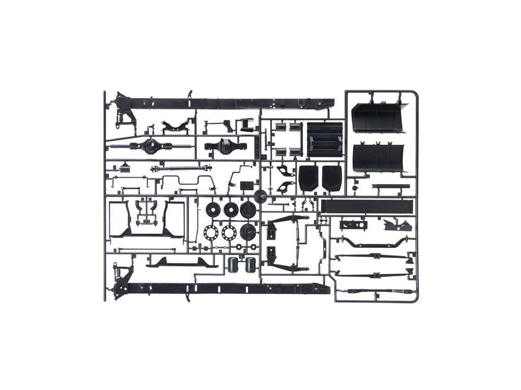Model trucku ke slepení. Velikost: 1:24; 25 cm. Obtížnost: 5.GUMOVÉ PNEUMATIKY - CHROMOVANÉ DÍLY - ARCH OBTISKŮ PRO 2 VERZE - BAREVNÝ NÁVOD K POUŽITÍ