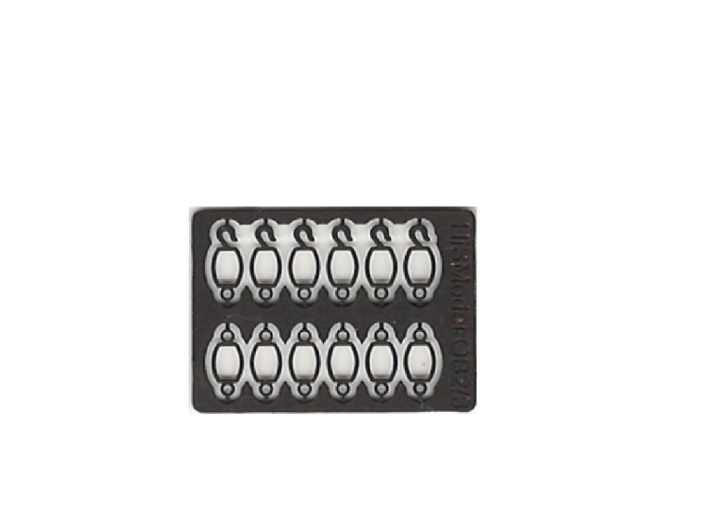 Set obsahuje 6 objímek s očky na obou stranách a 6 objímek s očky a háčky. Tloušťka plechu 0,3 mm.