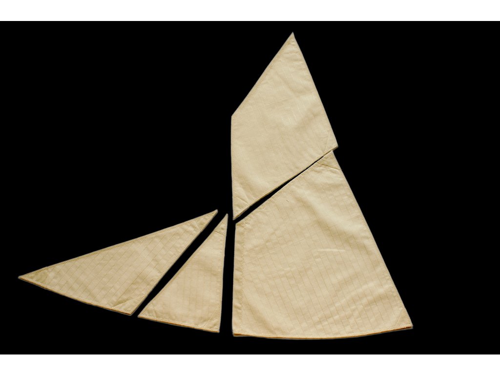 Plachty jsou ušity na CNC šicím stroji. Střih, zesílení plachet odpovídá historické skutečnosti. Střih těchto plachet vychází z historických plánů lodi.