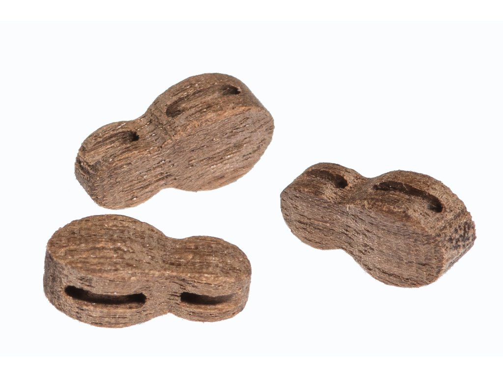 Nabídka obsahuje všechny potřebné kladky pro realizaci pevné takeláže lodi podle plánů s vyznačenými kladkami.