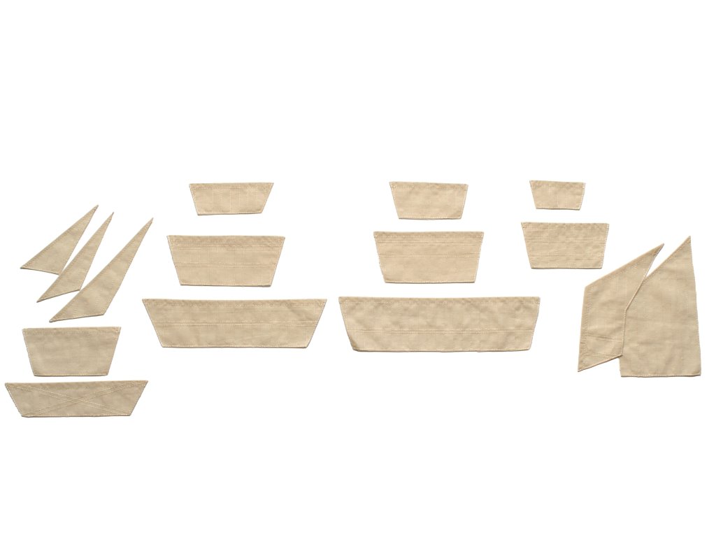 Popis plachet: Jedná se o kompletní 22 dílnou sadu plachet, které jsou určeny jako imitace svinutých nebo silně podkasaných plachet. Plachty jsou ušity menší než standardní plachty a tím pak nevytváří na ráhnu nepřiměřeně velký balík tkaniny. Plachty jsou ušity tak, aby pasovaly na model a odpovídaly originálnímu plánu této lodi.