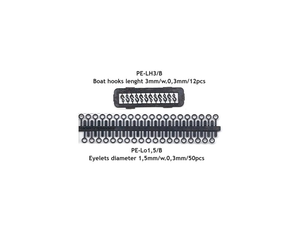 1: | PE-LH3/B Ship hooks 3mm/th.0,3mm/12pcs - black patinate (1x) |