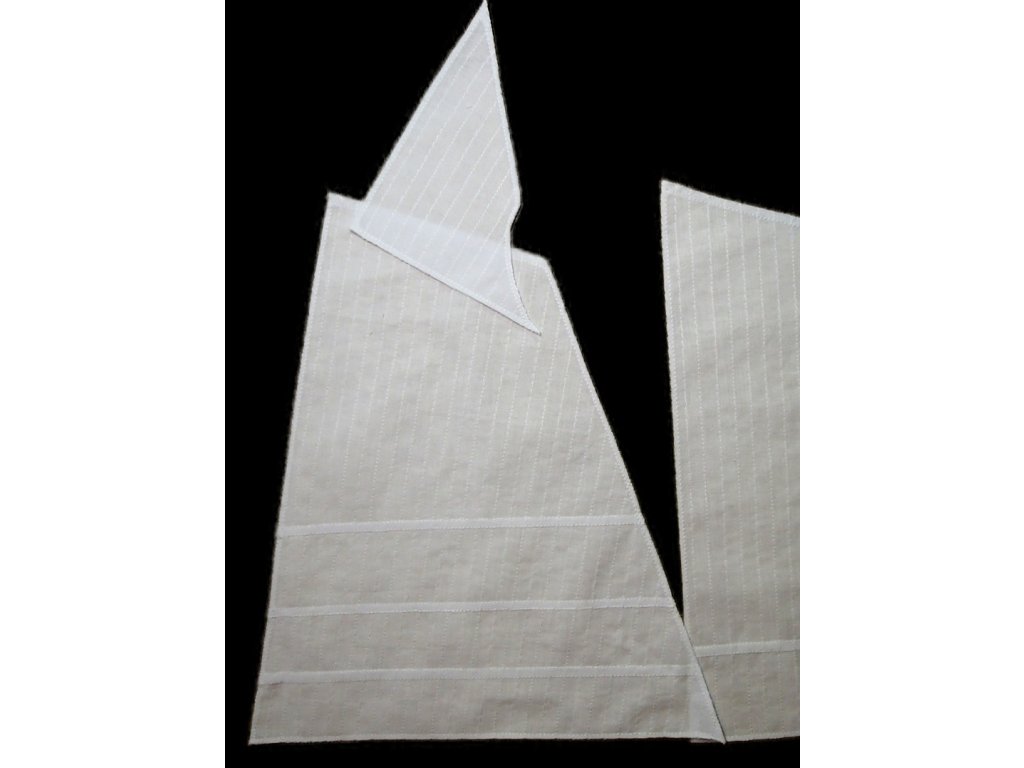 Plachty jsou ušity na CNC šicím stroji. Střih, zesílení plachet odpovídá historické skutečnosti. Střih těchto plachet vychází z historických plánů lodi.